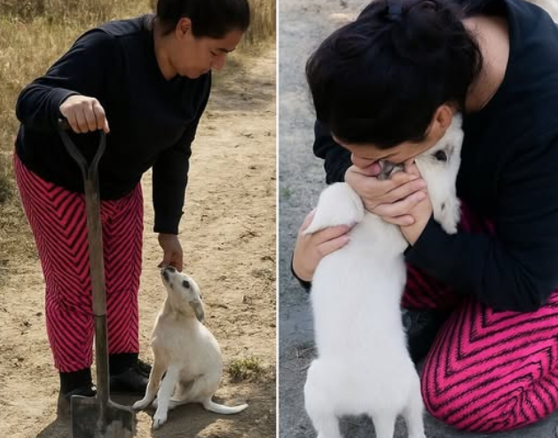 As Lidia was finishing the burial, the unthinkable happened. Out of the vast, empty landscape, a tiny white puppy suddenly appeared.